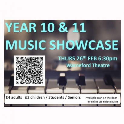 On Wednesday 26th Feb we are staging the Year 10 & 11 Music Showcase Evening! 6:30pm - 8pm
