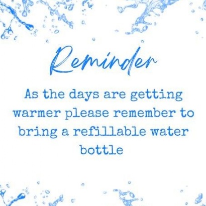 Please remember to bring a water bottle to school with you! As the days are getting warmer, it is important to keep yourself hydrated.